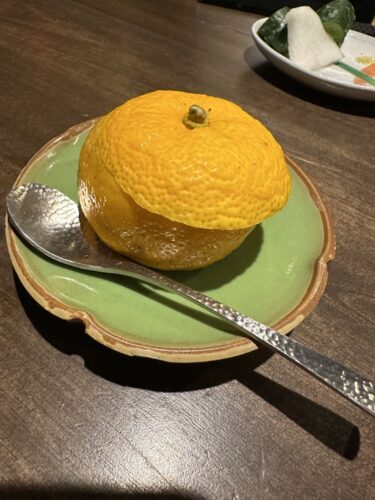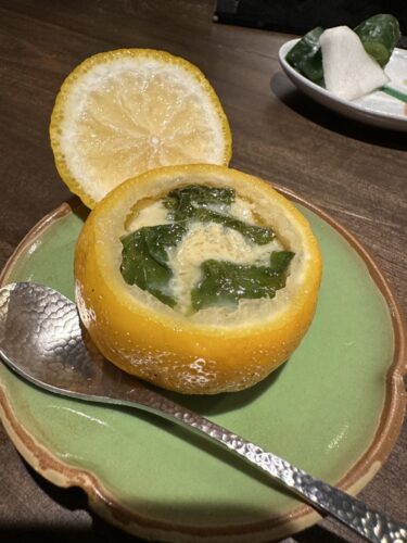 と茶碗蒸しを出してくださいました。柚を器にしてあります。