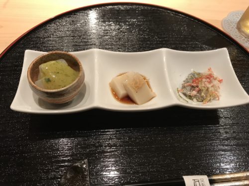 まずは先付です。湯来町の刺身こんにゃくやこのしろのおから和え!めちゃくちゃおいしい~!このしろもめちゃくちゃおいしい~!