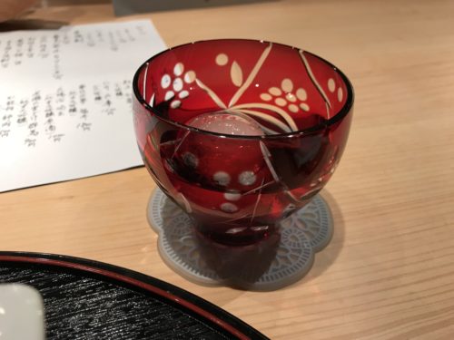 焼酎をお願いするととってもかわいい切子で登場しました!センスがいいですね!