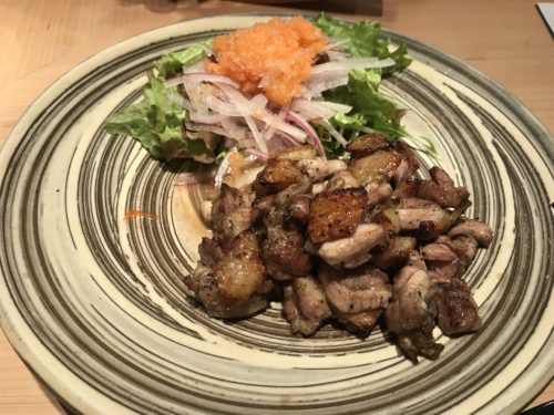 宮崎地鶏の炭火焼きをお願いしました!この地鶏がこれまたおいしいのなんのって!野菜もたっぷり添えてくださっています!あ~幸せ!