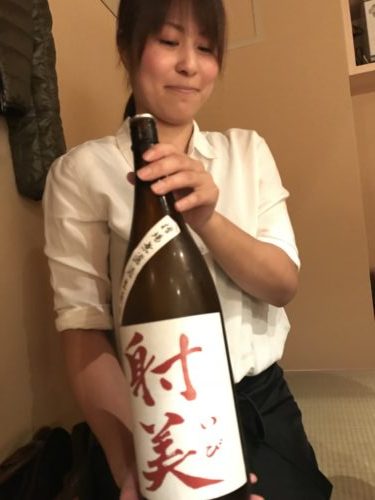 初めてお見かけした射美という日本酒をいただきました!水野美紀さん似の美人さんに注いでいただくなお一層おいしいですね~!