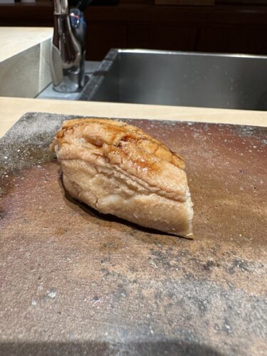 お椀物が登場して一通りが終了しました。ということで追加をお願いします!まだ食べていなかったえんがわをお願いします。大きめなえんがわにびっくりです!こちらも相当美味しいです!