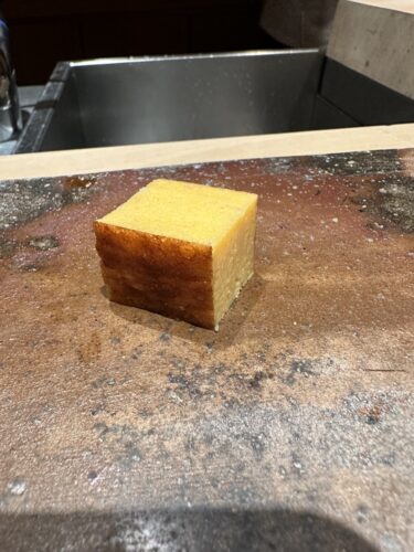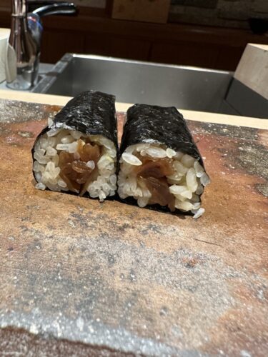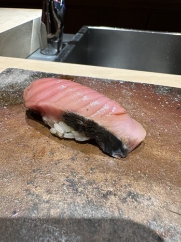 続いて鯖の棒鮨が登場しました!まずは海苔の香りを!素晴らしい香りですね!いただいてみるとこれまた、、、感動です!はちゃめちゃに美味しい~!