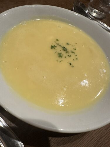 この日はちょっぴり寒かったのでまずはポタージュスープで温まります。昔懐かしのポタージュスープです。美味しいですね~!ほっとします。