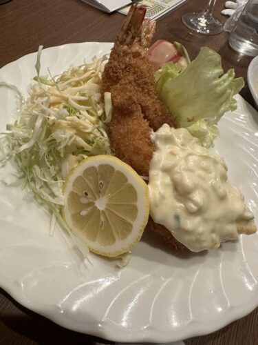 久々に食べたくなったのでエビフライをお願いしました。実はあんまり海老を食べるほうではないんです。嫌いではないのですが小さいころに食べ過ぎて一度嫌いになったことがありまして、、笑。すぐ食べ過ぎる癖が出ちゃいます。