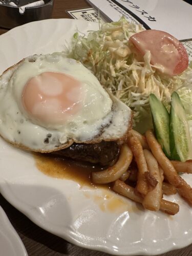 ハンバーグが食べたくなって単品でお願いしてみました!大好きなマカロニサラダもついてきます。アラスカさんはとにかく野菜がたっぷりついてくるのでとても助かりますね~!半熟卵を割って一緒にいただいてみると抜群に美味しい~!なんて美味しんだろう!ほんと基本の味って感じがして安定感半端ないです!