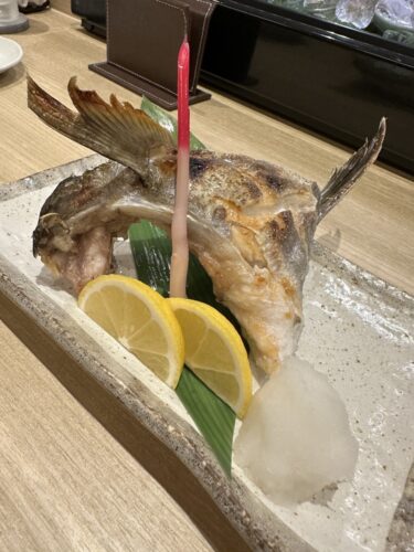 カンパチのカマが焼きあがりました!脂がしっかりのっていますね~!めちゃめちゃ美味しい~!案外食べれるところ多いですよね~!