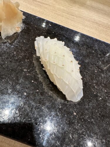 ここでようやく握りをいただきます!まずはイカから!甘みがあって美味しいイカでした!
