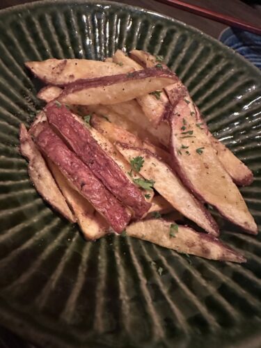 時間がかかるので先に頼んでおいたフライドポテトが登場しました!これめちゃめちゃ美味しんですよ!甘みをしっかり感じて最高でした!