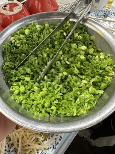 食べている間にお母さんに次々と焼いていただきます!特製のポン酢にねぎをたっぷりいれていただきます。