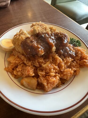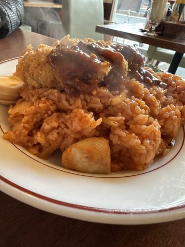 はじめてランチボックスさんに伺った時に隣の方がたべられていたチキンライスの上にフライドチキンがのっているメニューはなんだろうって思いながら探したのを記憶しています。そしておそらくチキンピラフだろうとオーダーしたら正解!