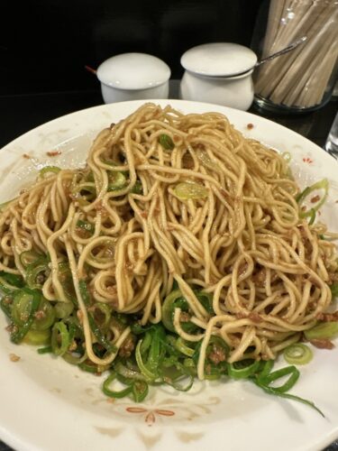次に私の汁なし担々麺の大盛りが登場しました!大盛にしても650円ですよ~!ありがたいですね~!しっかり混ぜて混ぜて、、、箸を持つ手がいたくなるくらいしっかり混ぜます。汁なしといえども実は下に少し汁があります。その汁がすべてなくなるまで麺に絡ませていただきます。