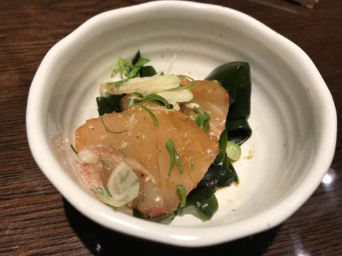 まずはハートランドの生ビールで乾杯させていただいて先付の白身の漬けをいただきました~!あ~おいしいです~!