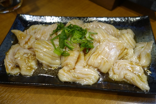 これだけおいしいシマチョウがあるということは、、上ミノも相当おいしいのではないかと!お願いしてみました!登場した上ミノがこれまた最高においしい~!たまりませんね~!おいしい上ミノって共通するのが食べごたえ!信じられないくらい噛みやすい!すばらしいです!