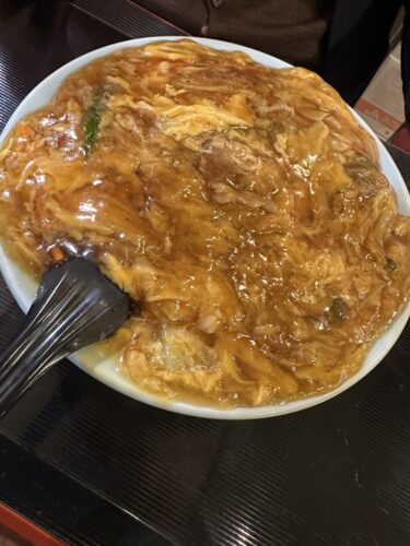続いて中華丼が登場しました!私は蓬莱さんに小さいころから通っていますが中華丼があったとは知らなかったです。というよりも蓬莱さんといえば天津丼だったので天津丼しか頼んだことがなくて、、、笑。美味しそうな中華丼だったので次回は中華丼もトライしてみようと思いました。