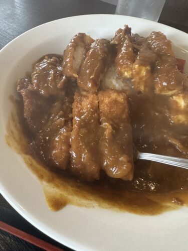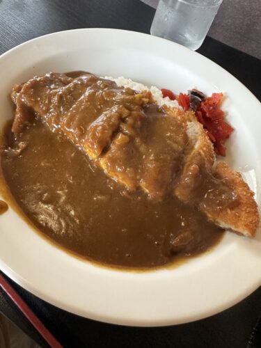 食券をカウンターの担当の方に渡してしばらくすると番号が呼ばれてチキンカツカレーを受け取りにいきました。チキンカツもしっかりとのっていますね!一口いただいてみると、うん美味しい~!