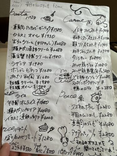 お昼に伺ったのでランチコースをお願いするか単品でいくか迷ったのですがいろいろ食べたかったので単品でお願いしました。
