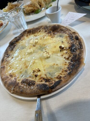 ピザをもう一枚お願いしました。クアトロフォルマッジ!ブルーチーズの風味がたまらないですね。ピザの生地もとっても美味しい~!