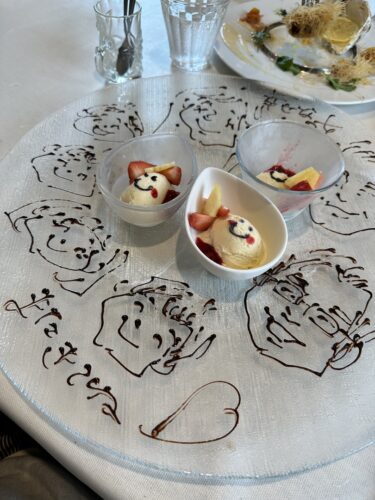 最後はアイスクリームをお願いしたのですが、一緒に行ったご夫婦とお子さんの似顔絵をチョコレートで書いてくださいました。ありがとうございました!