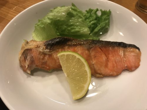 大好物の鮭の塩焼きをお願いしました。この鮭がまたおいしい~!塩鮭ですね!小さいころよく食べていましたが最近ではあまりみかけなくなりました。でもお酒には本当によく合うんですよ~!最高です!