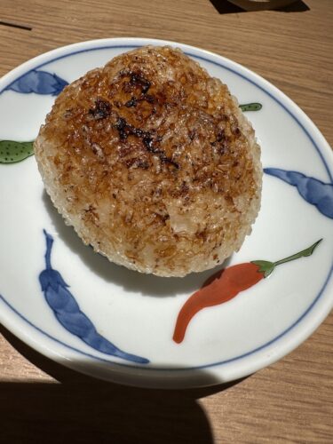 ここで〆として焼きむすびをいただきます。香ばしい醤油の香りが素晴らしいですね~!焼き加減ほんと素晴らしい~!