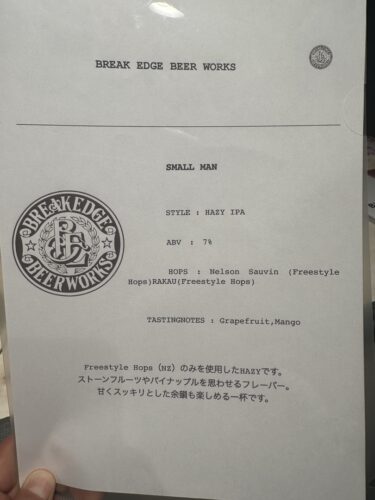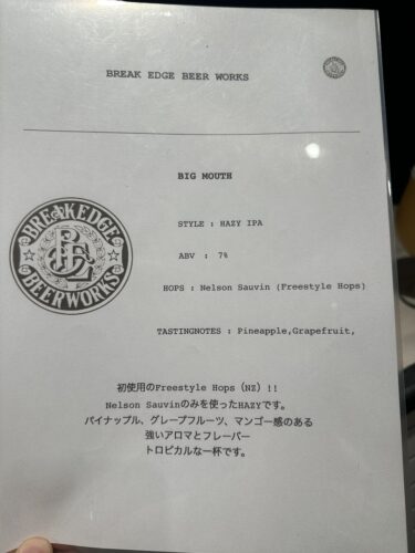 お話を聞いてみるとBREAK EDGE BEER WORKSさんという広島の醸造所さんの直営店なんだそうです。BREAK EDGE BEER WORKSさん自体を私は知らなかったです。