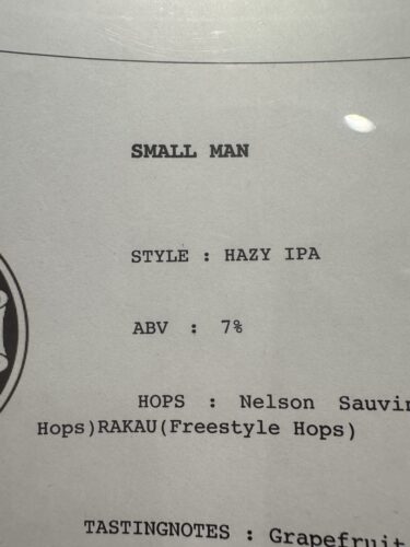 HAZYIPA?聞いたことないですね!まずは香りから!めちゃくちゃいい香りがしますね~!いただいてみるとその香りとはまた違った苦みをしっかり感じることができました!めちゃくちゃ美味しい~!見た目はミックスジュースみたいなのに!(笑)SMALLMANという名前のビールなんだそうです。