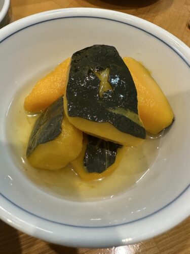 ちょっと前にかぼちゃの煮物をテレビで見てめちゃくちゃ食べたくなってあけびさんへ!さっそくかぼちゃからいただきます!あ~~~美味しい~!最高です!