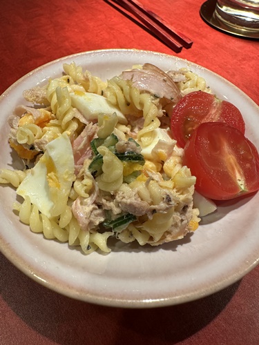 ごぼうのきんぴらをいただいた後にマカロニサラダもいただきます!こちらもお酒にちゃんとあうようにしっかり作られていました。美味しい!