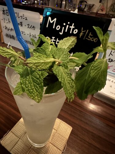 いつものようにマスターが迎えてくださいました。カウンターを見るとモヒート始めましたとありました!おおお!モヒート!いっちゃいましょう!