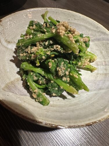 まずは菜花の胡麻和えをいただきます。こういうお料理ほんと大好きです。一人でガツガツたべてしまって一緒に行ってくれた方の分まで食べちゃいました。(笑)