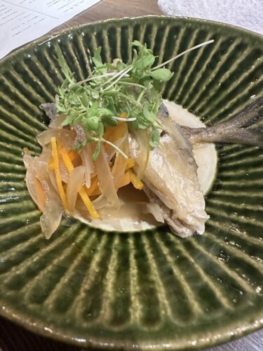 これまた好物のあじの南蛮漬けをお願いしました。南蛮漬けの酸味がたまらなく好きなんです。いただいてみると美味しい~!もちろん骨までいただきますよ~!