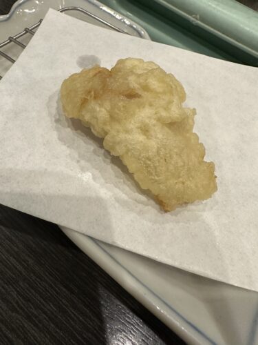新玉ねぎの季節ですがからっと玉ねぎが上がっていてこちらも美味しい~!小さいころ玉ねぎの天ぷらが大好物でした!ウスターかけてごはんの上にのっけて食べていたのを思い出します。