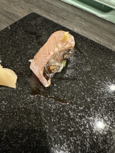 さきほど美味しいな~と思っていたサワラが登場しました!皮目が少しあぶってあるので香ばしさと一緒にいただけました~!超美味しい~!