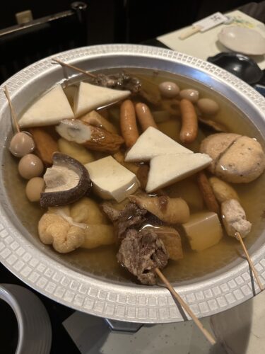 お料理はまずは名物おでんからですね~!とってもお出汁が美味しんですよね~!具もたっぷり用意してくださいました。大好物のしゅうまいがなかったので女将さんにこっそりお願いしたら3つだけあったのでいただいちゃいました。(笑)めちゃめちゃ美味しい~!