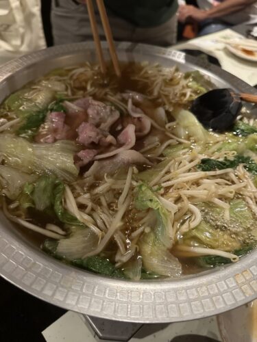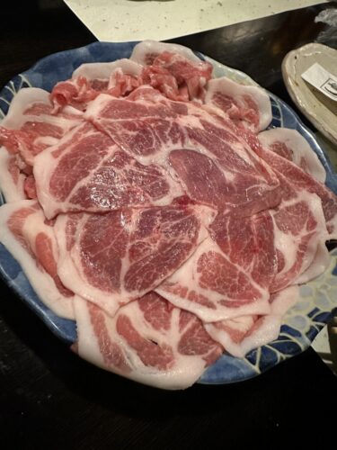 ろくさんのコースはこれだけでは終わりませんよ~!最後はお鍋が登場します!たっぷりの野菜と広島が誇る井筒精肉店さんの豚肩ロース肉のしゃぶしゃぶです!