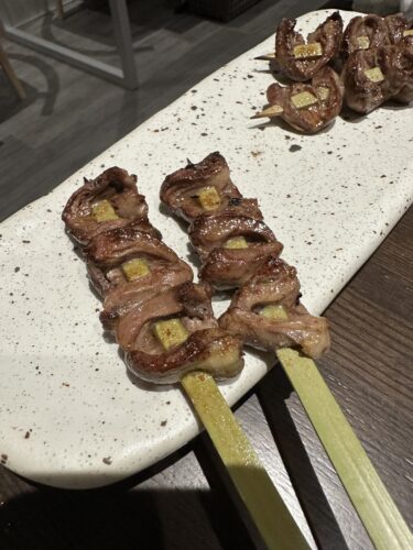 つくねをお願いしたら大きさにびっくり!これくらいの太さのつくねって焼き加減が難しいと思うのですが中までしっかりと火がとおってそして美味しい~!