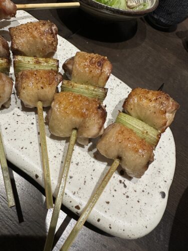 最近ねぎまってこういう形が多いですよね~!ねぎも美味しい、もも肉も美味しい~!