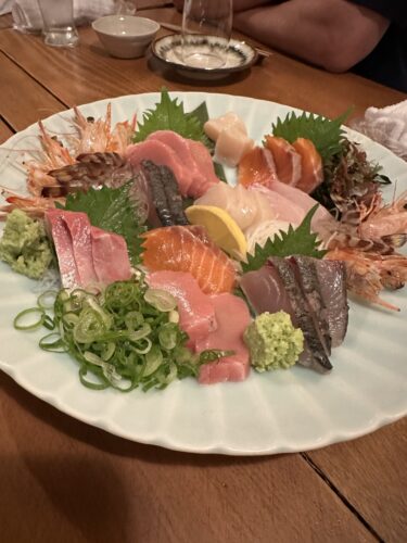 続いてお刺身が登場しました!ボリューム満点、魚種もたくさん!こちらも美味しかった~!これいくらのコース料理なんだろう?笑