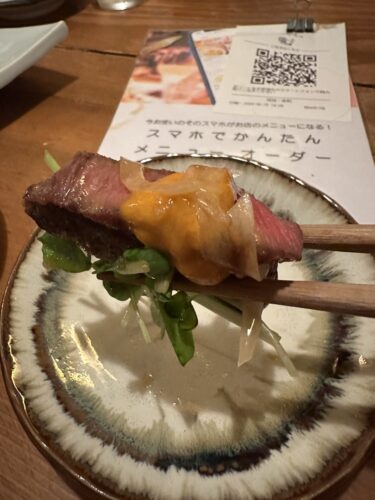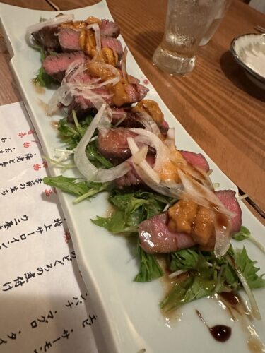 いただいてみると、ウニとサーロインの脂がほんとうにマッチしててコクがあって最高です!