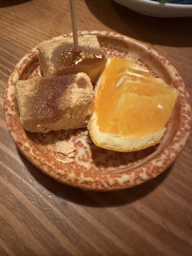 最後はわらび餅と季節のフルーツで!