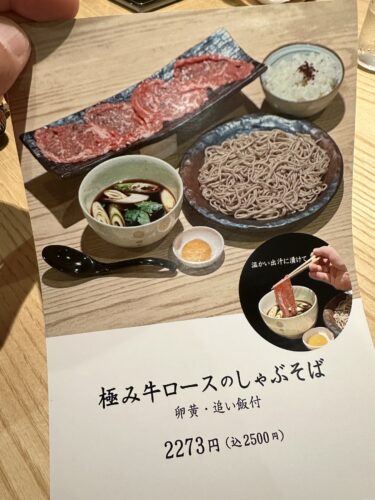 メニューをみてみるとすごく豪華なお肉のお蕎麦がありました!あまりにもいい肉そうなのでちょっと私はたべれないかな~と思いながらグランドメニューの方も確認してみると、昼そば定食ってのがあったのでそちらをお願いしてみました。