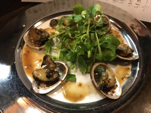 いつも見ていただいてありがとうございます!メニューを見ると久しく見ていなかったハマグリが!大好物のハマグリお願いすると、、、えええ!今まで見た中で一番大きいような、、大将もそうだって!いただくと、おいしい~!えび一さんのハマグリ最高!