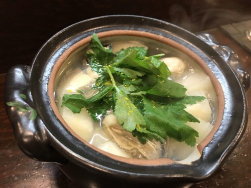 最後はかぶと牡蠣と鯛の小鍋を!でも鯛がなくなったので違うお魚を入れてもらいました!出汁がとってもおいしいです~!牡蠣もたっぷり入っていました!