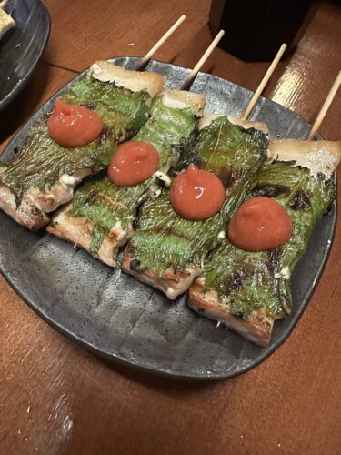 豚シソもお願いしてみました!豚バラがしそで巻かれていました!梅が添えてあるのであっさりといただけました~!