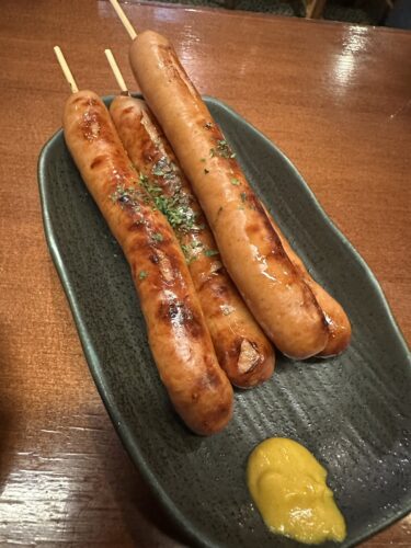 串焼き屋さんにきたら絶対お願いするのがウィンナー!パリっとしてうまみがじゅわ~!たまらんです!