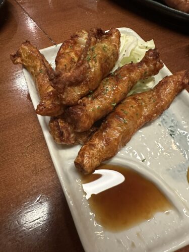 もう一つ気になったのが手羽めんたい!手羽の皮の中に明太子がたっぷりと!めちゃめちゃ美味しい~!