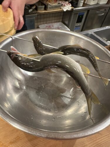 ついに庄原産の天然鮎が!生きている状態から串打ちを目の前で!ライブ感がはんぱないです!