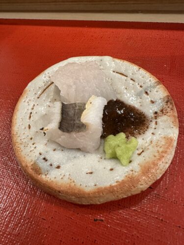 お造りは鱧から登場しました!特製梅のソースがあいます!