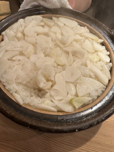 最後は最近料理むら上さんのシグネチャーになっているような気がするにんにくごはん!これマジ最高なんです!